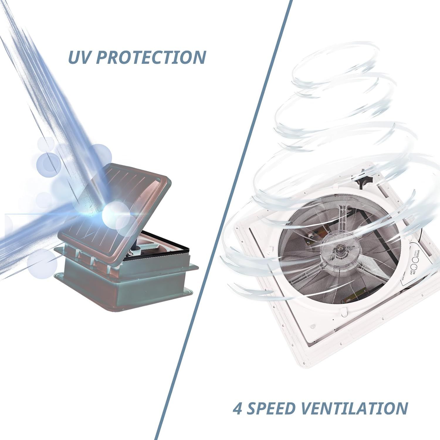 [���������������� ������������������������]The rv exhaust fan keeps your camper fresh and bright with transparent fan blades that bring sunlight in.It can be used for bathroom,living room,bedroom,kitchen in RV,camper,travel trailer.