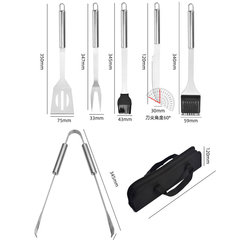 Home > Bbq Barbecue Tools Set Stainless Steel Outdoor Barbecue Tools Combination Set Of Cloth And Tianjin Bag 6 Sets