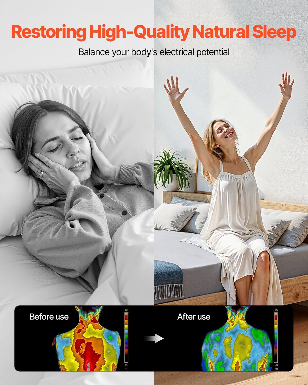 · Experience Natural Sleep: Enjoy a peaceful night's sleep with our grounding sheet. It gently releases static electricity from your body to the Earth through a grounding cord. Say goodbye to restless nights and hello to improved sleep quality and reduced fatigue