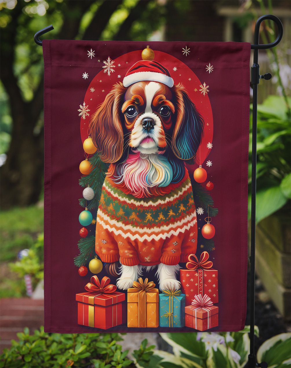 Garden Flag featuring breed specific English Toy Spaniel artwork. Celebrate Christmas with this Christmas Garden Flag. Enhance the beauty of your garden, patio, or yard with Caroline's Treasures Decorative Garden Flag, proudly made in the USA. Crafted from two pieces of thick, double-sided polyester fabric, this 2-ply garden flag is designed to withstand various weather conditions, making it water-resistant and weatherproof. Featuring correctly readable words on both sides, this garden flag offers a delightful visual experience from any angle. With its heavier weight, it stands out among other garden flags, ensuring stability and durability even in wind, rain, and snow. Measuring approximately 11 1/4 inches by 15 1/2 inches, this flag allows you to personalize your outdoor decor. It comes with a 1 1/2-inch sleeve sewn in, allowing easy attachment to any standard garden flag stand or garden size porch hanger (sold separately). Make a statement in your outdoor space with Caroline's Treasures Decorative Garden Flag, a vibrant and high-quality flag that adds color and personality to your surroundings. Proudly made in the USA, it's a symbol of quality craftsmanship and attention to detail.