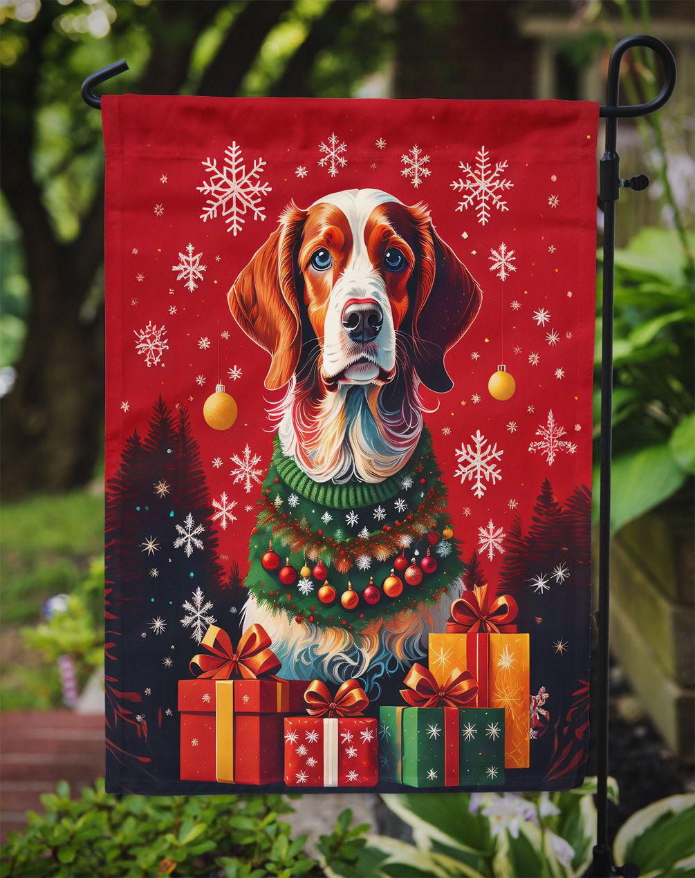 Garden Flag featuring breed specific Brittany artwork. Celebrate Christmas with this Christmas Garden Flag. Enhance the beauty of your garden, patio, or yard with Caroline's Treasures Decorative Garden Flag, proudly made in the USA. Crafted from two pieces of thick, double-sided polyester fabric, this 2-ply garden flag is designed to withstand various weather conditions, making it water-resistant and weatherproof. Featuring correctly readable words on both sides, this garden flag offers a delightful visual experience from any angle. With its heavier weight, it stands out among other garden flags, ensuring stability and durability even in wind, rain, and snow. Measuring approximately 11 1/4 inches by 15 1/2 inches, this flag allows you to personalize your outdoor decor. It comes with a 1 1/2-inch sleeve sewn in, allowing easy attachment to any standard garden flag stand or garden size porch hanger (sold separately). Make a statement in your outdoor space with Caroline's Treasures Decorative Garden Flag, a vibrant and high-quality flag that adds color and personality to your surroundings. Proudly made in the USA, it's a symbol of quality craftsmanship and attention to detail.