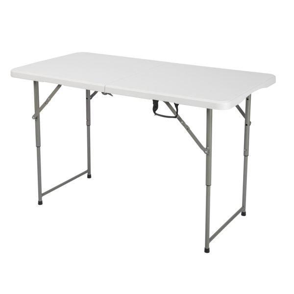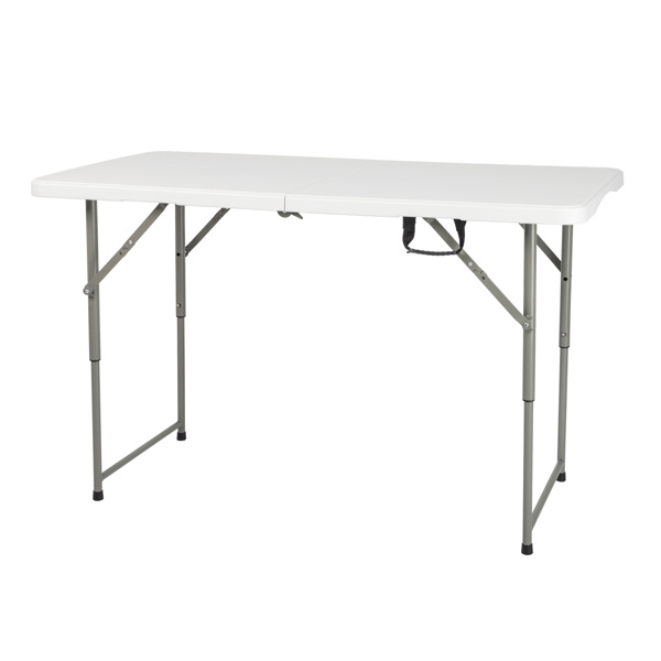 The 4ft Foldable Lift Patio Plastic Table is a best choice for you.  The table is made from HDPE and the leg is made of steel.  It's of great outdoor leisure furniture.  This table has small size and light weight so that it's easy to be fitted with your guard. This table also has the function of lifting and folding.  This is a best useful furniture for you.  It's structure simple and practical.  You can put it in your garden or in your guard.  You will like it so what are you still waiting for?