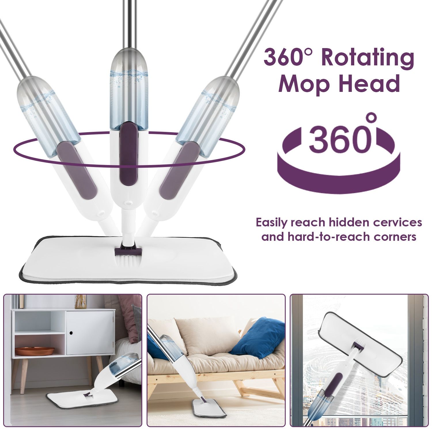 High-Absorbent Microfiber Pad: Microfiber mop pad has high water absorption, our spray mop is suitable for most types of the floors, including hardwood, laminate, vinyl, wood, tile, marble, cement and stone, leaving no watermarks or puddles after cleaning. Come with 3 replaceable mop pads, easily attach to the mop head, machine washable feature makes them reusable and easy to maintain.
