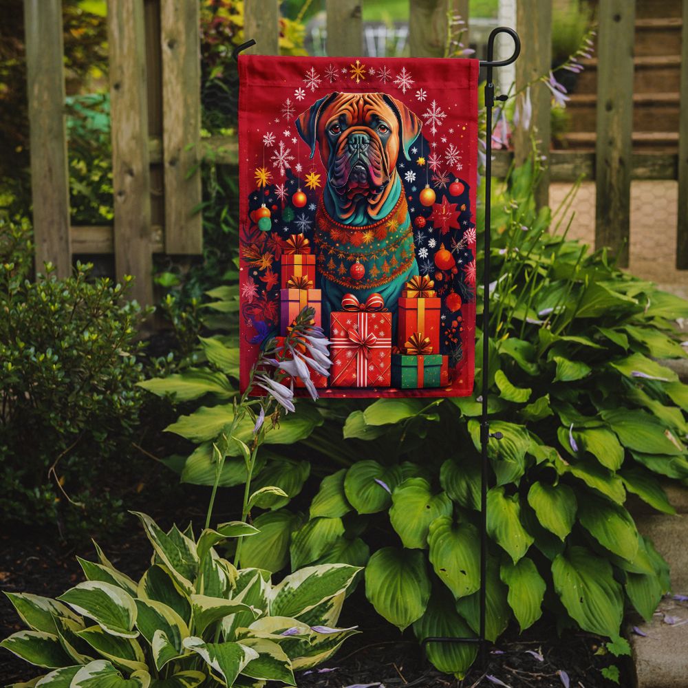 Garden Flag featuring breed specific Dogue de Bordeaux artwork. Celebrate Christmas with this Christmas Garden Flag. Enhance the beauty of your garden, patio, or yard with Caroline's Treasures Decorative Garden Flag, proudly made in the USA. Crafted from two pieces of thick, double-sided polyester fabric, this 2-ply garden flag is designed to withstand various weather conditions, making it water-resistant and weatherproof. Featuring correctly readable words on both sides, this garden flag offers a delightful visual experience from any angle. With its heavier weight, it stands out among other garden flags, ensuring stability and durability even in wind, rain, and snow. Measuring approximately 11 1/4 inches by 15 1/2 inches, this flag allows you to personalize your outdoor decor. It comes with a 1 1/2-inch sleeve sewn in, allowing easy attachment to any standard garden flag stand or garden size porch hanger (sold separately). Make a statement in your outdoor space with Caroline's Treasures Decorative Garden Flag, a vibrant and high-quality flag that adds color and personality to your surroundings. Proudly made in the USA, it's a symbol of quality craftsmanship and attention to detail.