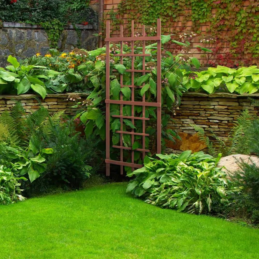 This 72-inch Modern Wooden Garden Trellis in Brown Walnut Finish is great for both indoor and outdoor use. This unique 2-frame, color-treated design gives your climbing plants room to grow. It's the perfect way to add vertical space to your garden. Simply push the stakes into the soil and loosely wrap the vines up the trellis. You can use this trellis in a large flower pot or garden bed. It's made with durable cedar-tone pine for a natural wood look. Our trellis comes pre-assembled for easy installation.