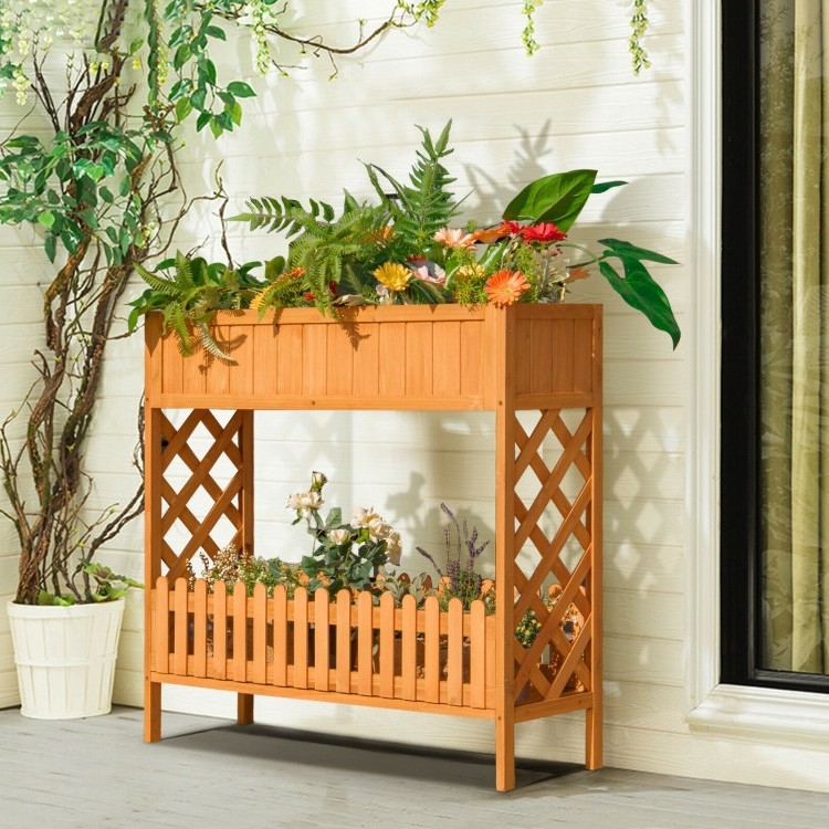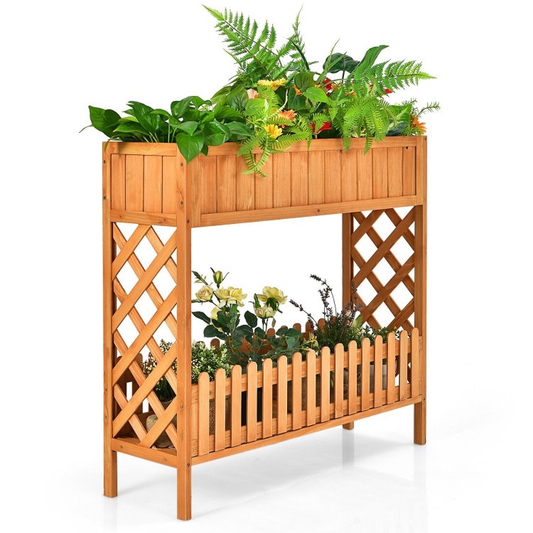 Home > 2 Tier Raised Garden Bed Elevated Fir Wood Planter Box