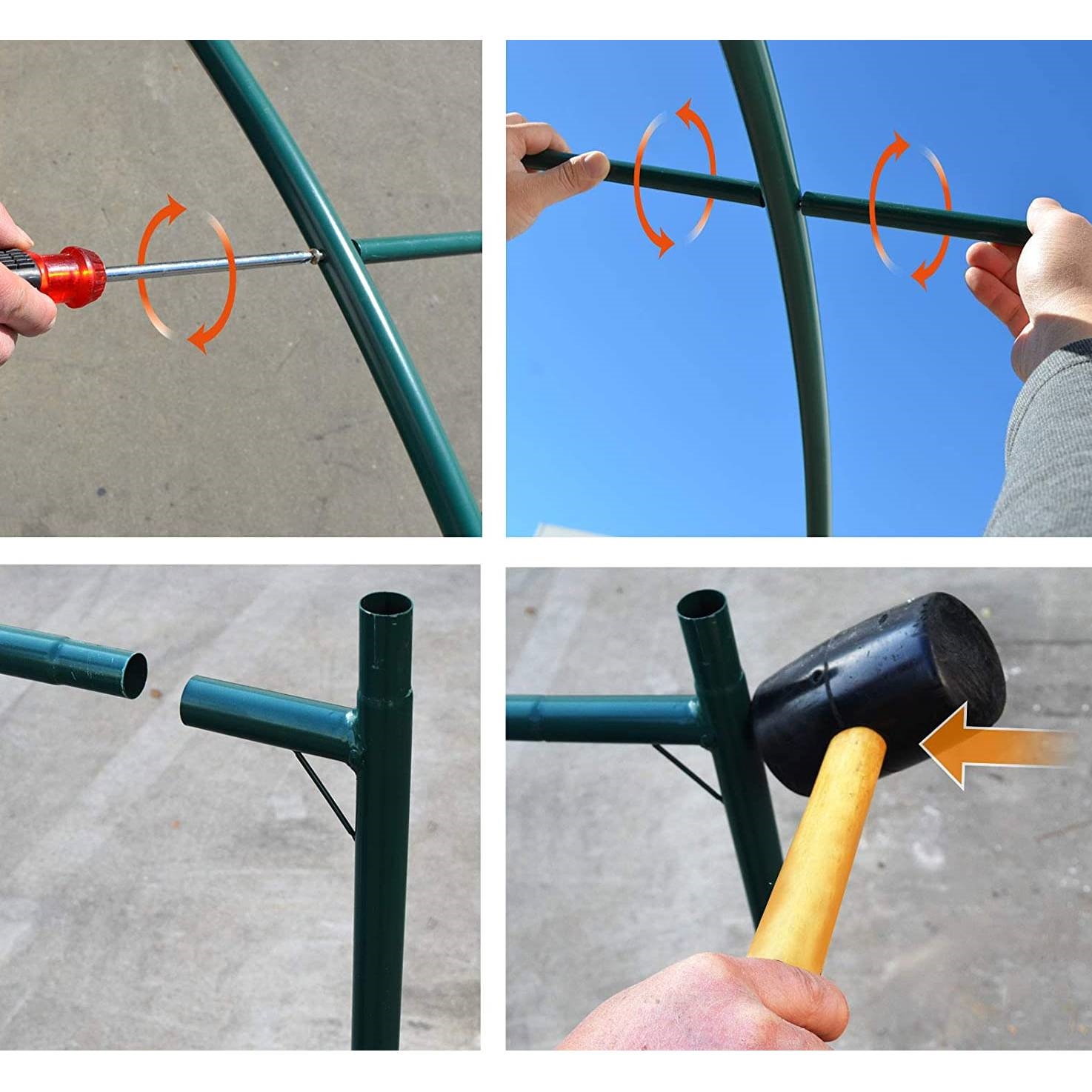 • Green powder coated steel frame and middle rails provide additional stability for this greenhouse.